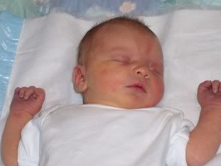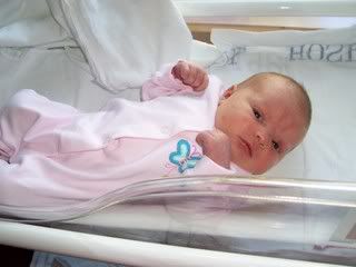 wow, she's gorgeous! and i can't believe how good you look for having just given birth. i don't think i could have smiled for a camera for about a day after having mikey. well done!