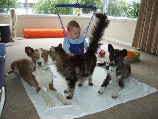 Love that pic of Spencer, the cat and the dogs. Classic chaos!