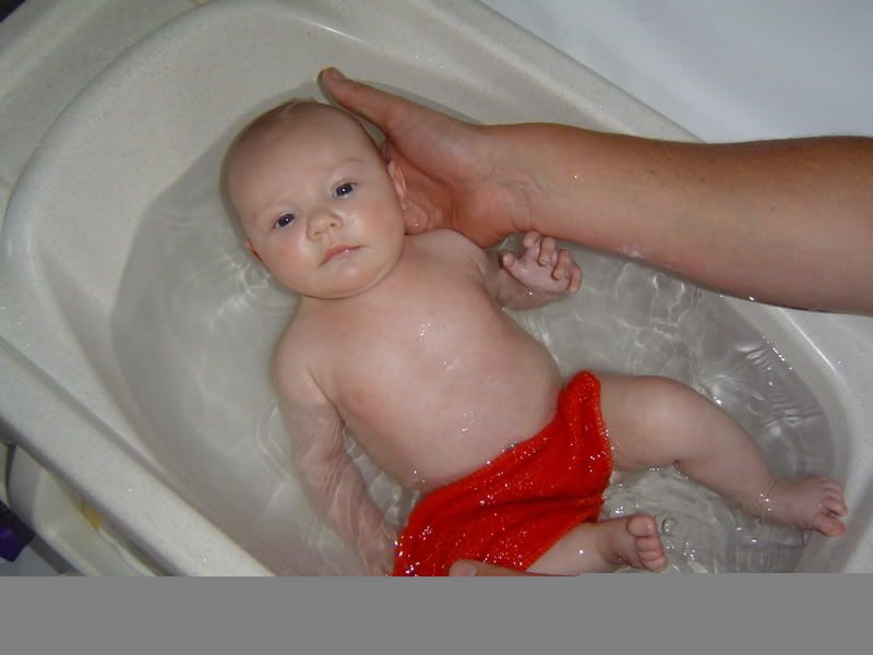 Look how cute she is! I can't believe our babies are nearly 3 months either! Charli looks like she is about done with the baby bath