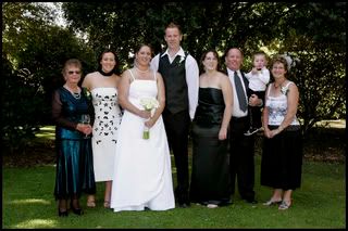 Me family: My nana, my sister Alescha, Me, DH, my other sister Erica, Dad, Andrew and my Mum. I was my nana's first grandchild to get married.