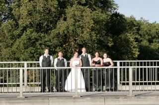 Pics: 1. Ceremony 2. Me! 3. Fav photo of Stu & I 4. 'The Girls'. Bridesmaids are; my best friend and my niece. 5. 'The Boys'. Groomsmen are; DH's best friend and DH's nephew.