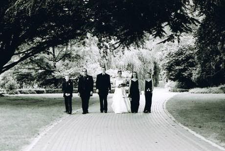 Our wedding party at the Roman Garden in Hamilton Gardens