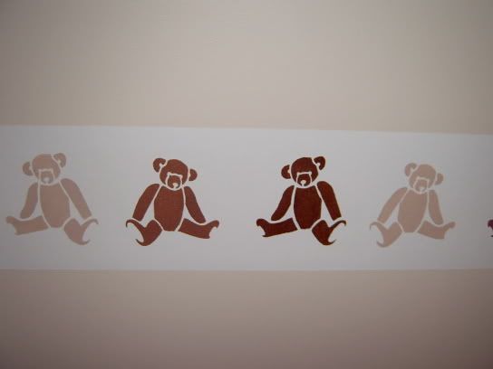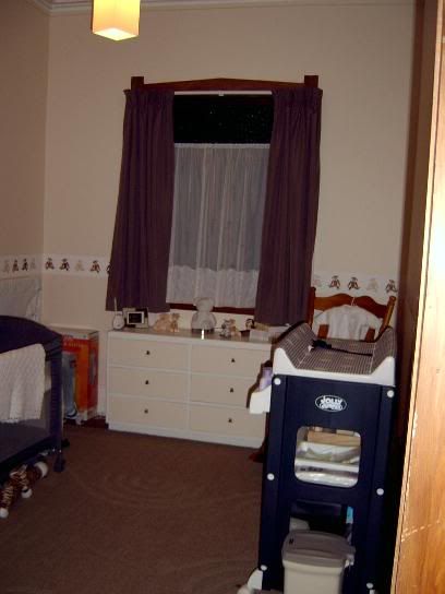 Wow alright. That is so great (the cot I mean). And the room! I'm just trying to choose colours for Alex's room. We didn't find out what sex he was, and so his room is yellow. So I am going to make our other bedroom his room, a great little boys room!! And then the yellow room will be baby # 2's when they arrive! Well thats the plan. I have been looking at blues and greens. Would never have thought the colours you chose would look so so wonderfull! Well done. (And I love the stencil too!!)