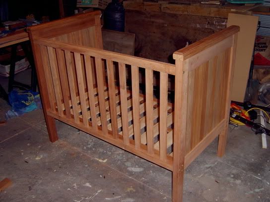 He's actually never done anything like this before which is probably why it has taken him 5 months so far (and that's working on it the whole weekend!) to get it just right. We took the design from my mate's cot (so that we got all of the measurements and safety features right), I think she bought her's in Farmers (would have been about 5 years ago though). It's one of those 3-in-1 styles (basinette - cot - sofa).
