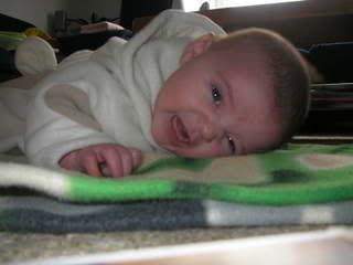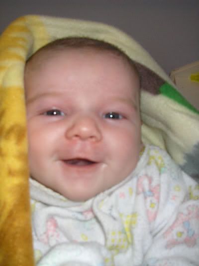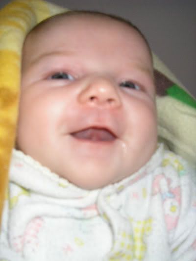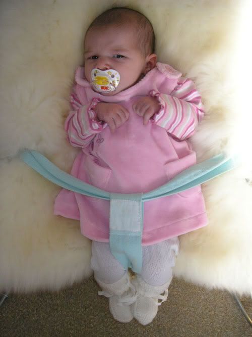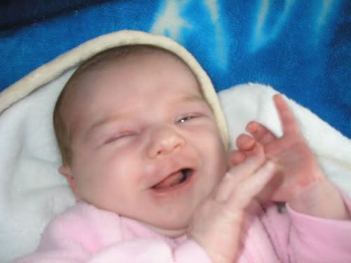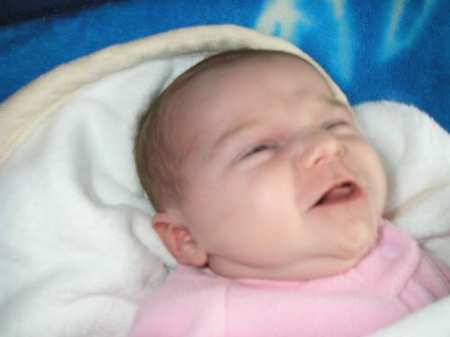 She is sooooo CUTE....and love those wee fluffy booties on her little scrunched up self...