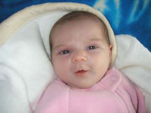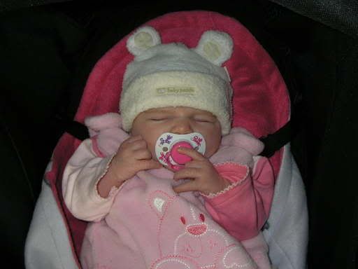Jess she is so cute, I love the carseat pic all snuggled up and the booties are so cute.
