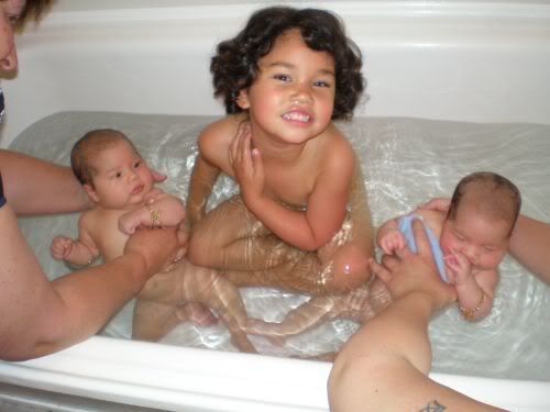 what gorgeous girls! i love the one of all 3 in the bath, sienna and mercedes are growing so quickly! lovely chubby bubbas