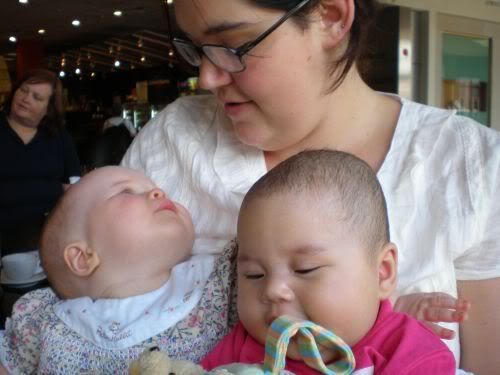 Was so nice to put faces to the names...and meet the kids too...loved Zacs hair!!! Maren is gorgeous and cuddly too, Jack was very entertaining, Zaara is a magician (disappears qucikly!) and Caitlin and Maya could be sisters!!! Erin does have the most goreous eyes, and Joshua eating his first cherios was priceless!!!...and loved seeing a couple of daddies totally wrapped around their babies little fingers too, esp little McKylas daddy!!! (total daddys girl!)