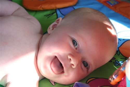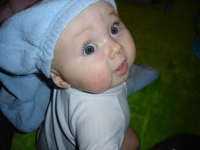 i dont have a hospital pic of gabriel but do have one at home about a week old having a bath.