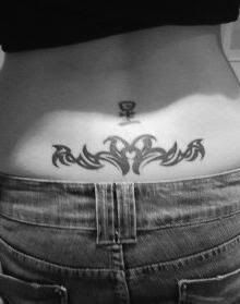 One on my shoulder blade is an aztec fertility / female symbol - its a round sun like design about as big as an apple. I love it but in hindsight wish I hadnt got it on my shoulder blade - as I feel self conscious wearing low backed dresses or things like that. The others are a small aztec symbol on my hip and a gecko (aboriginal design) on the top of my butt....geckos are a symbol of good fortune!
