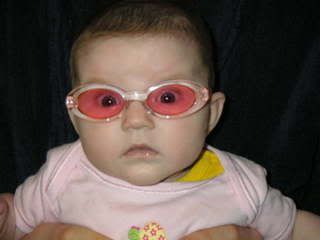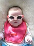 argh can't find it.. we took some a week or so ago but they have dissapeared off our computer.. mike will have stored them somewhere. I did find one of when she was about 3 or 4 months old wearing them though - at that stage they were Paris's.